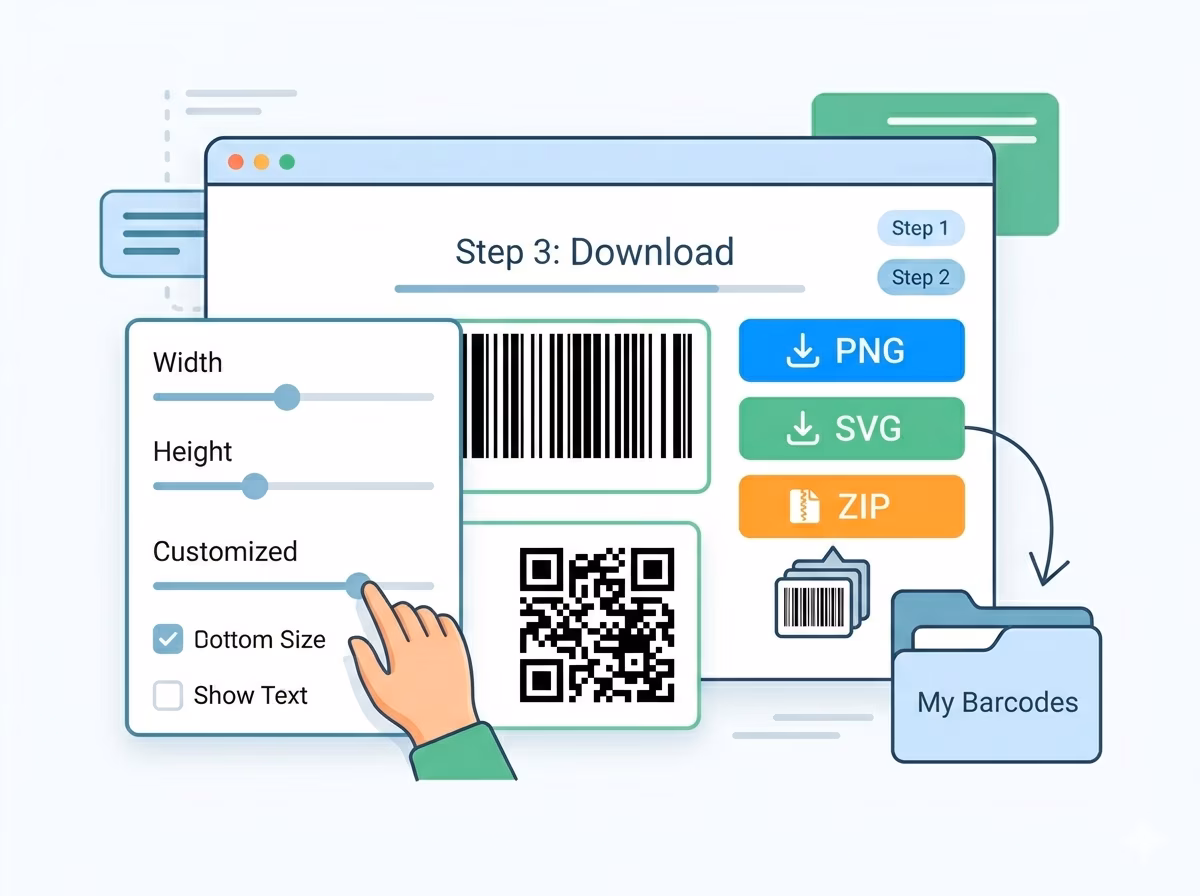 You can download or save barcodes in the following ways:
